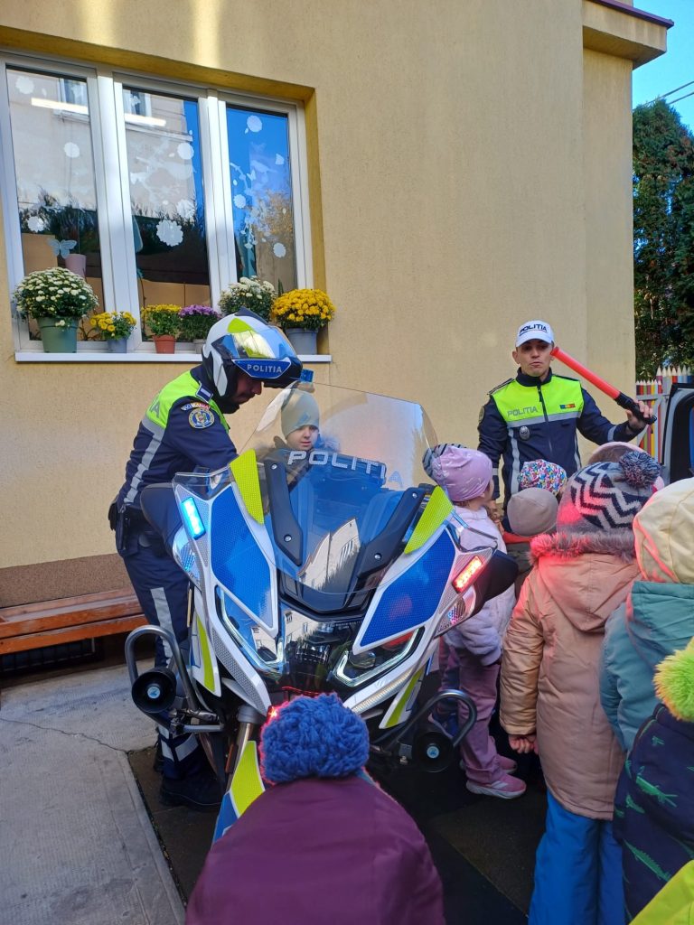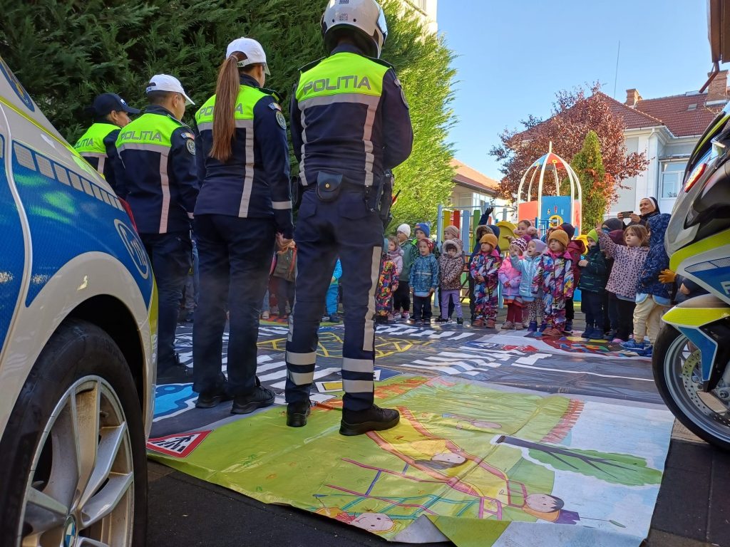 Preșcolarii de la Grădinița Confesională cu Program Prelungit „Sfânta Ana” din Cluj-Napoca au participat luni, 20 octombrie 2025, în cadrul programului „Săptămâna Altfel”, la o activitate specială alături de polițiștii din cadrul Serviciului Rutier Cluj, Biroului Rutier Cluj-Napoca și Biroului de Prevenire a Criminalității.